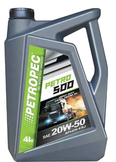 Petro 500 CH-4/SJ 20W-50 is a high performance; dedicated heavy duty engine lubricant designed for use in modern high-speed turbo charged diesel and petrol engines. It uses an exclusive additive formulation in conjunction with highly refined base oils to deliver longer life and enhanced protection relative to its predecessors. The product has been formulated for severe duty service in engines specifically designed to meet Euro-II on-highway exhaust emission standards as well as being suitable for a wide range of heavy-duty off-highway applications